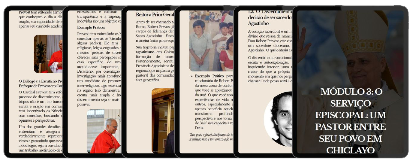 «Leão XIV Um Pastor para Tempos Novos”, encontra-se dividido em módulos, os quais são de fácil consulta
